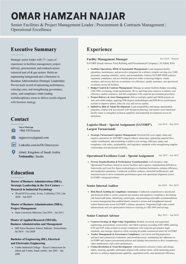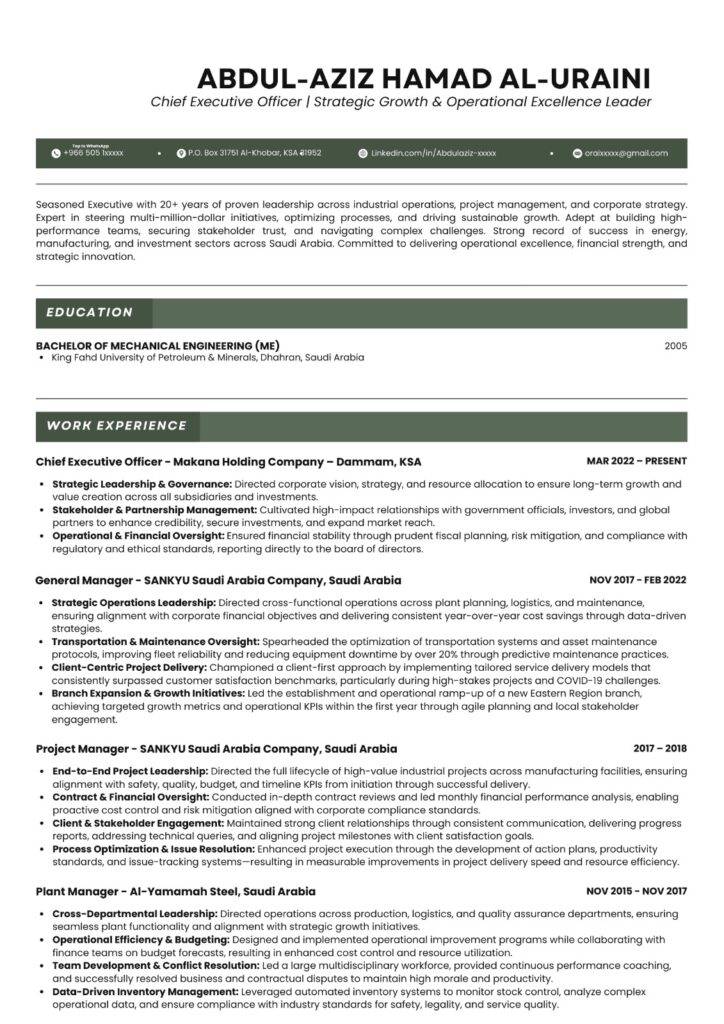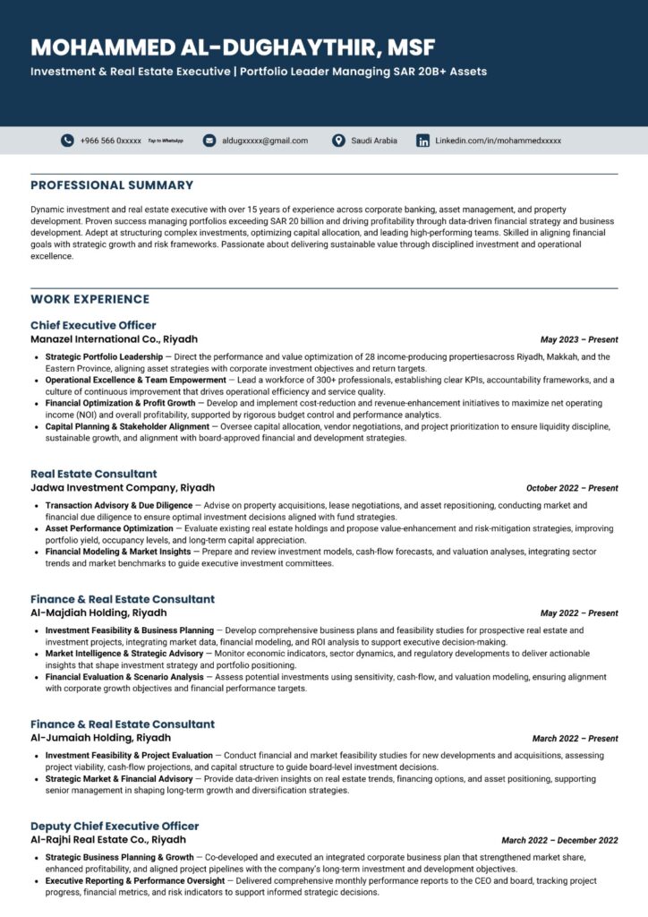 From entry-level candidates to senior executives, our portfolio showcases resumes and profiles designed to deliver real results — not just documents.